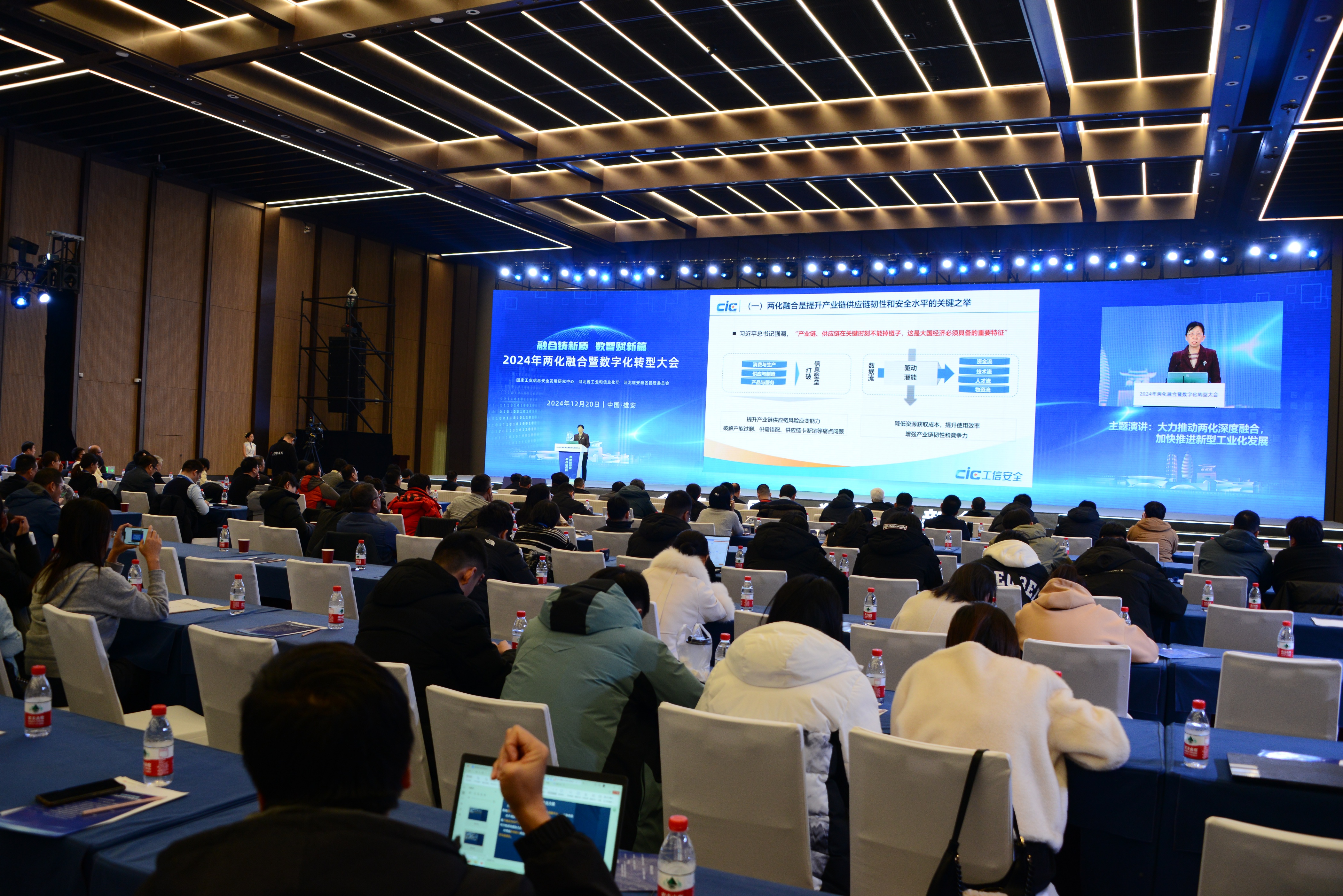 12月20日,2024年兩化融合暨數字化轉型大會在河北雄安新區成功召開。工業和信息化部副部長熊繼軍,河北省人民政府副省長趙大春出席大會開幕式并致辭,雄安新區黨工委副書記、管委會常務副主任、中國雄安集團有限公司黨委書記、董事長吳波致大會歡迎詞,第八屆湖南省政協副主席、IEEE終身院士、國際導航與運動控制科學院院士蔡自興作主旨發言,國家工業信息安全發展研究中心(以下簡稱“中心”)主任、黨委副書記蔣艷出席全體會議并發表主題演講。