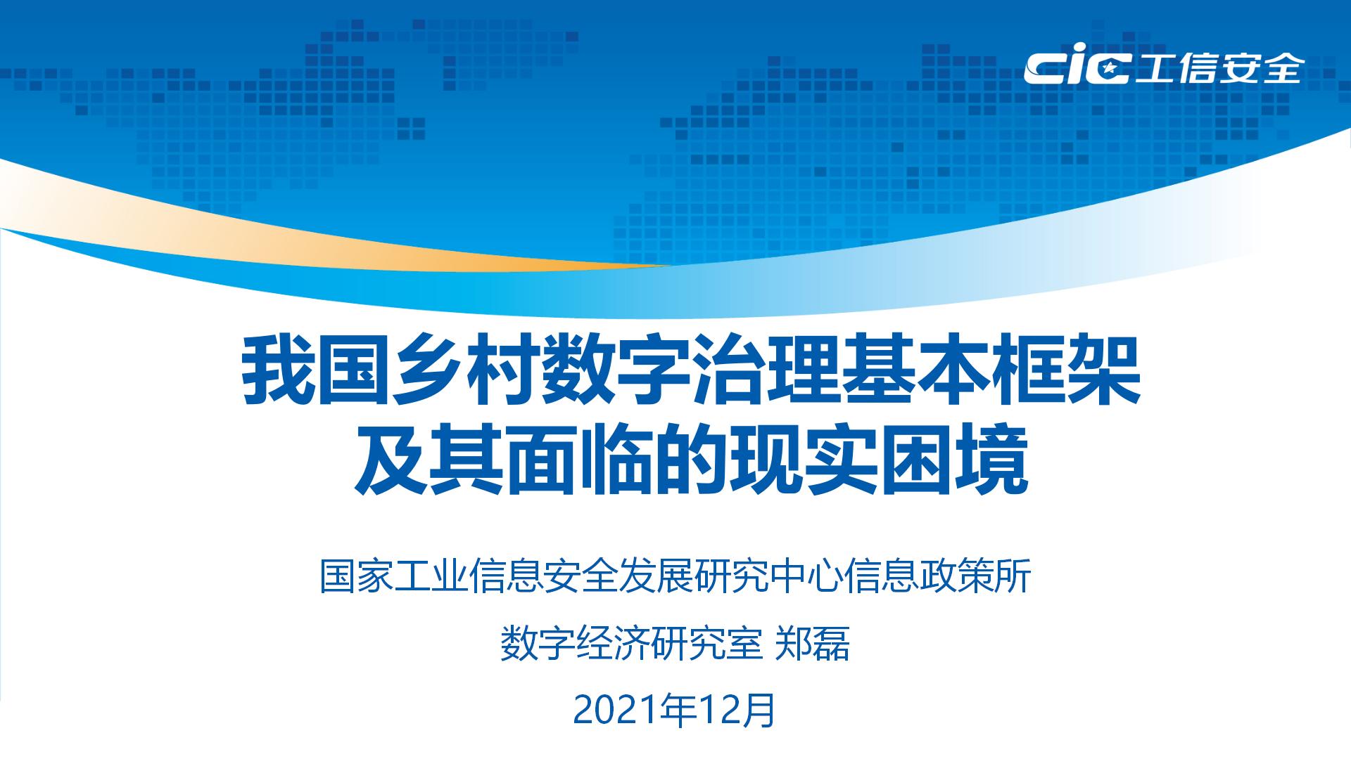 12月28日,第二十一場“工信安全智庫”系列報告在線發布活動——“數字經濟專題”成功舉辦。信息政策所數字經濟研究室副主任鄭磊發布了《我國鄉村數字治理基本框架及其面臨的現實困境》洞察報告。