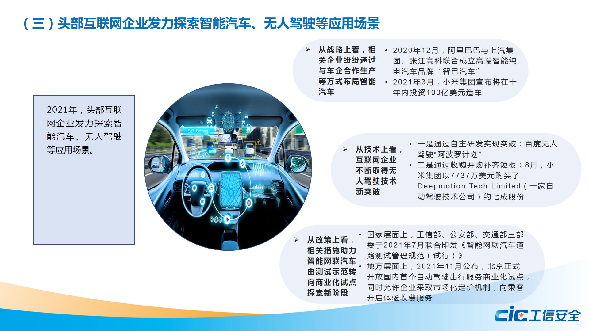 4月8日,第二十二場(chǎng)“工信安全智庫(kù)”系列報(bào)告在線發(fā)布活動(dòng)成功舉辦。信息政策所數(shù)字經(jīng)濟(jì)研究室助理工程師黃梁峻發(fā)布了《2021年我國(guó)百?gòu)?qiáng)互聯(lián)網(wǎng)企業(yè)發(fā)展態(tài)勢(shì)研究》報(bào)告。該報(bào)告從平臺(tái)分級(jí)、平臺(tái)分類、市值變化、投資陣營(yíng)、城市分布等多個(gè)角度對(duì)我國(guó)大型互聯(lián)網(wǎng)企業(yè)進(jìn)行分析和比較,探究了其發(fā)展現(xiàn)狀,發(fā)展趨勢(shì),分析了發(fā)展中面臨的問題,提出了對(duì)策建議。