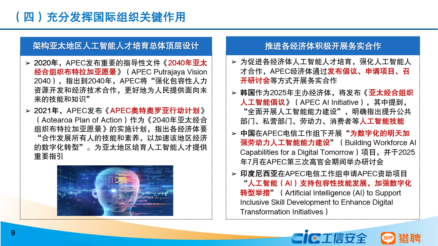 10月24日,國家工業(yè)信息安全發(fā)展研究中心在瓊成功舉辦“APEC實(shí)操創(chuàng)新型人工智能人才培養(yǎng)研討會”。中心信息政策所聯(lián)合同道獵聘集團(tuán)發(fā)布《亞太地區(qū)人工智能人才發(fā)展研究報(bào)告》(以下簡稱《報(bào)告》)。