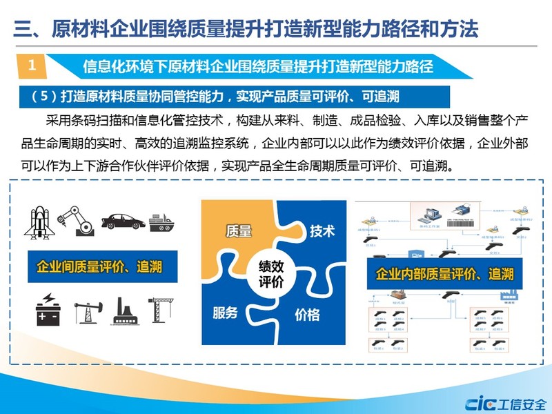 近日,國家工業(yè)信息安全發(fā)展研究中心信息化所承擔(dān)的《原材料行業(yè)兩化融合促質(zhì)量提升方法與推廣研究》項目,順利通過驗收。該課題為2018年工業(yè)質(zhì)量品牌建設(shè)工作重點項目,是落實《中共中央 國務(wù)院關(guān)于開展質(zhì)量提升行動的指導(dǎo)意見》和《原材料工業(yè)質(zhì)量提升三年行動方案(2018—2020年)》的重要實踐。
