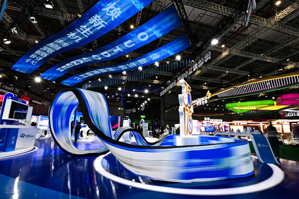 ??這是2024年11月8日在第七屆進博會醫療器械及醫藥保健展區拍攝的輝瑞展臺。新華社記者 辛悅衛 攝